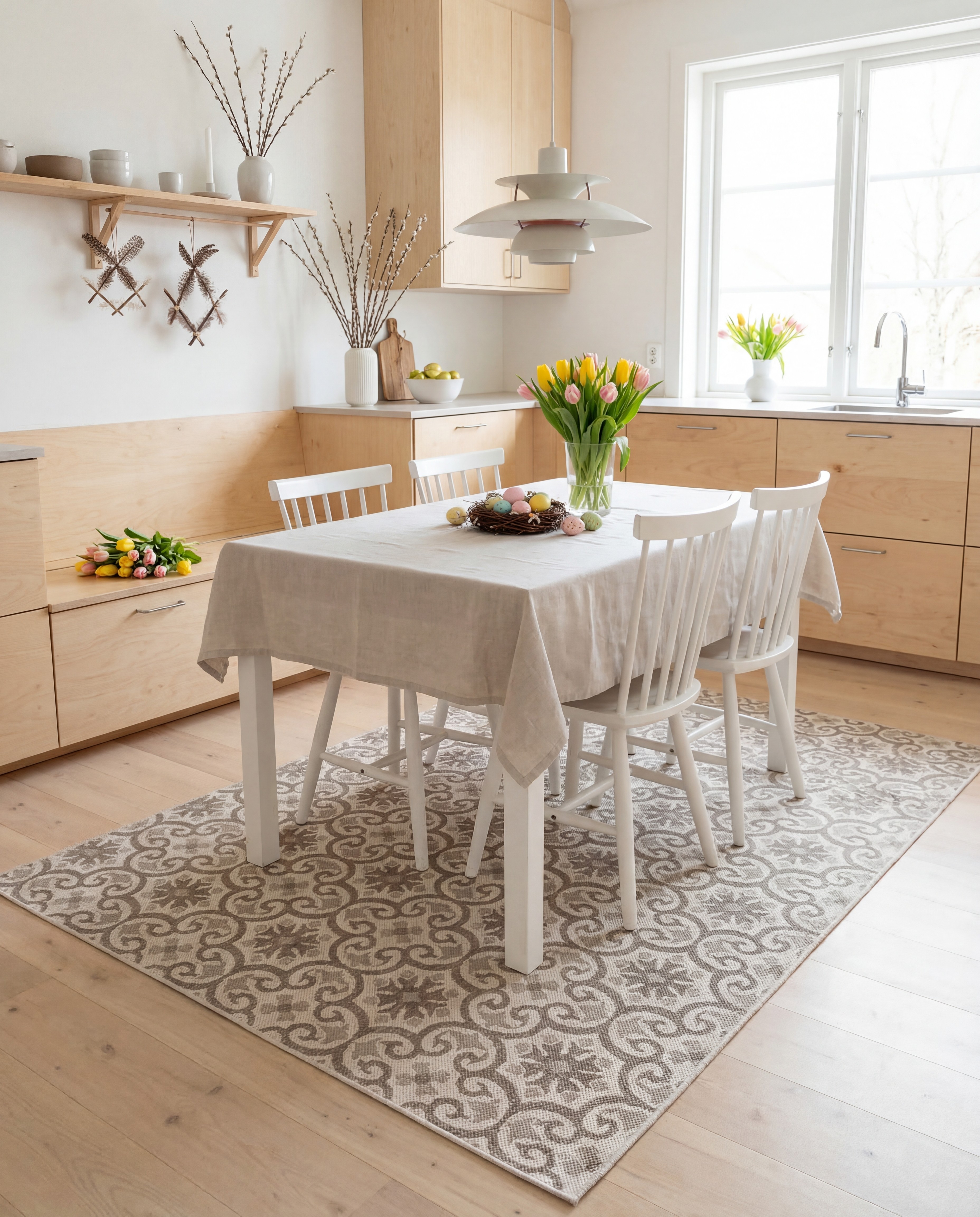 Bismark är en tålig flatweave matta med underbart mönster i dova färger. Flatweave mattor har en tålig yta och lämpar sig därför väldigt bra utomhus eller i matsal eller kök. Bismark finns i två olika storlekar.