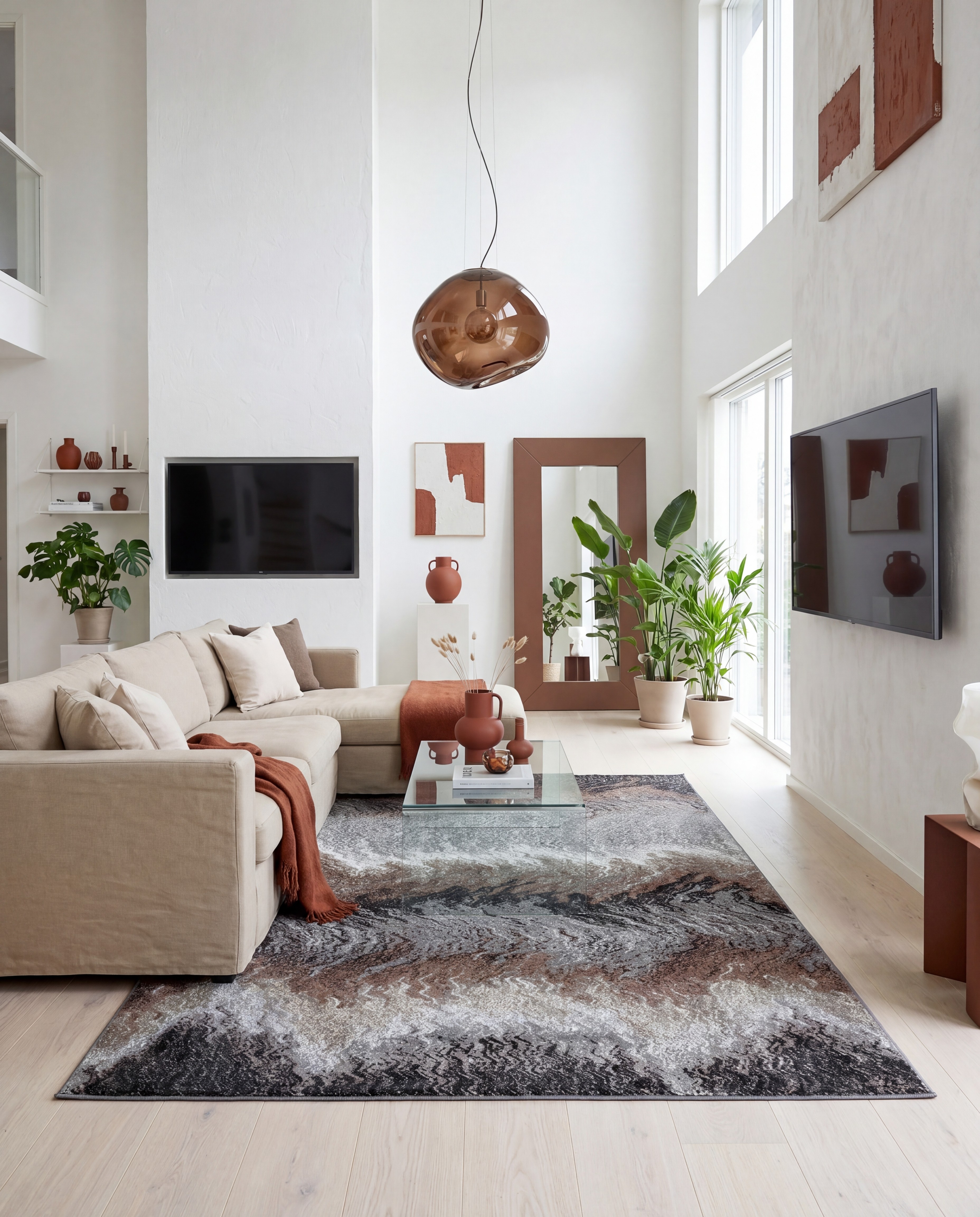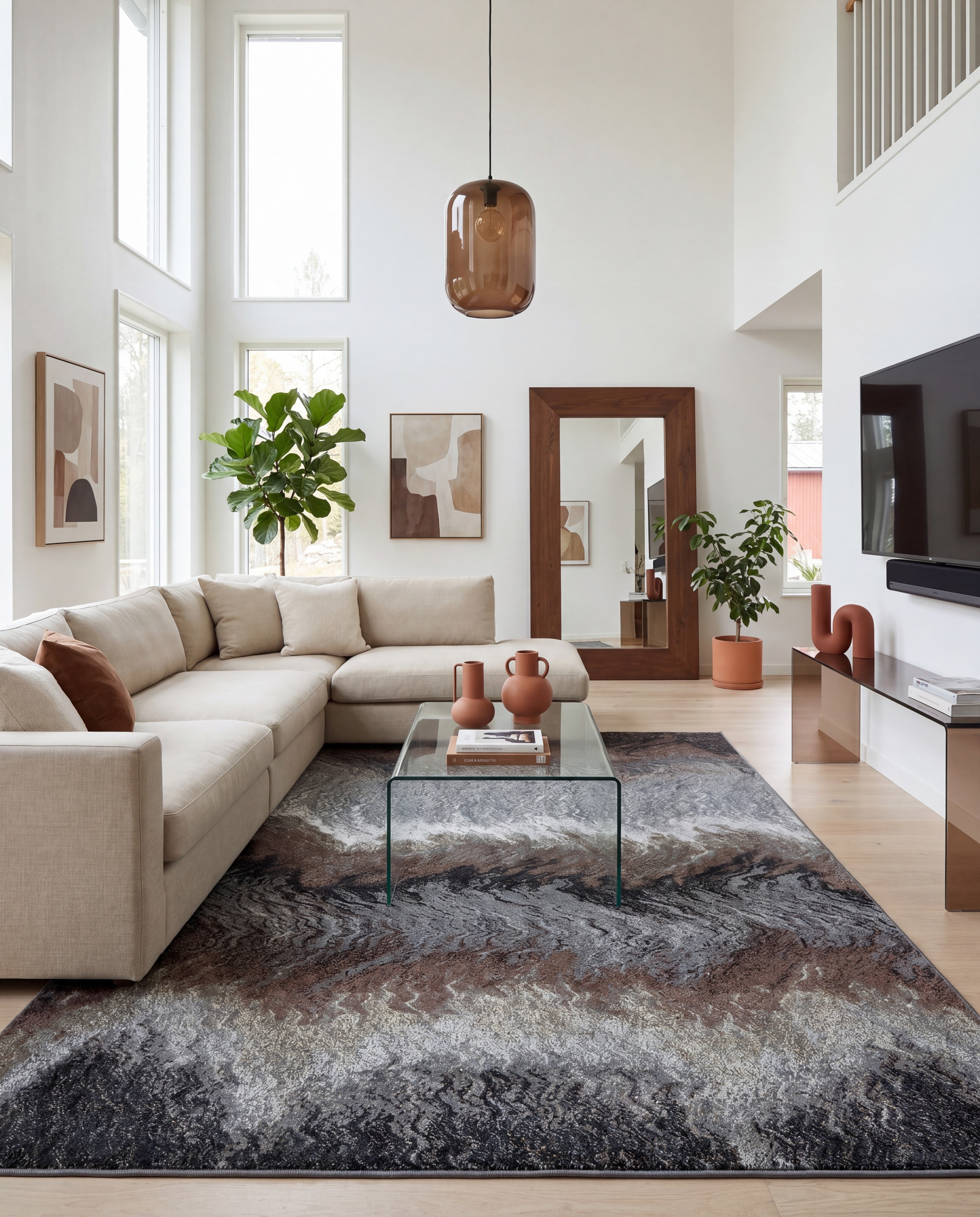 En superfin wiltonmatta som passar både antracit och bruna soffor. Bara en sådan sak! Jordnära färger som både är trendiga och håller över tid.