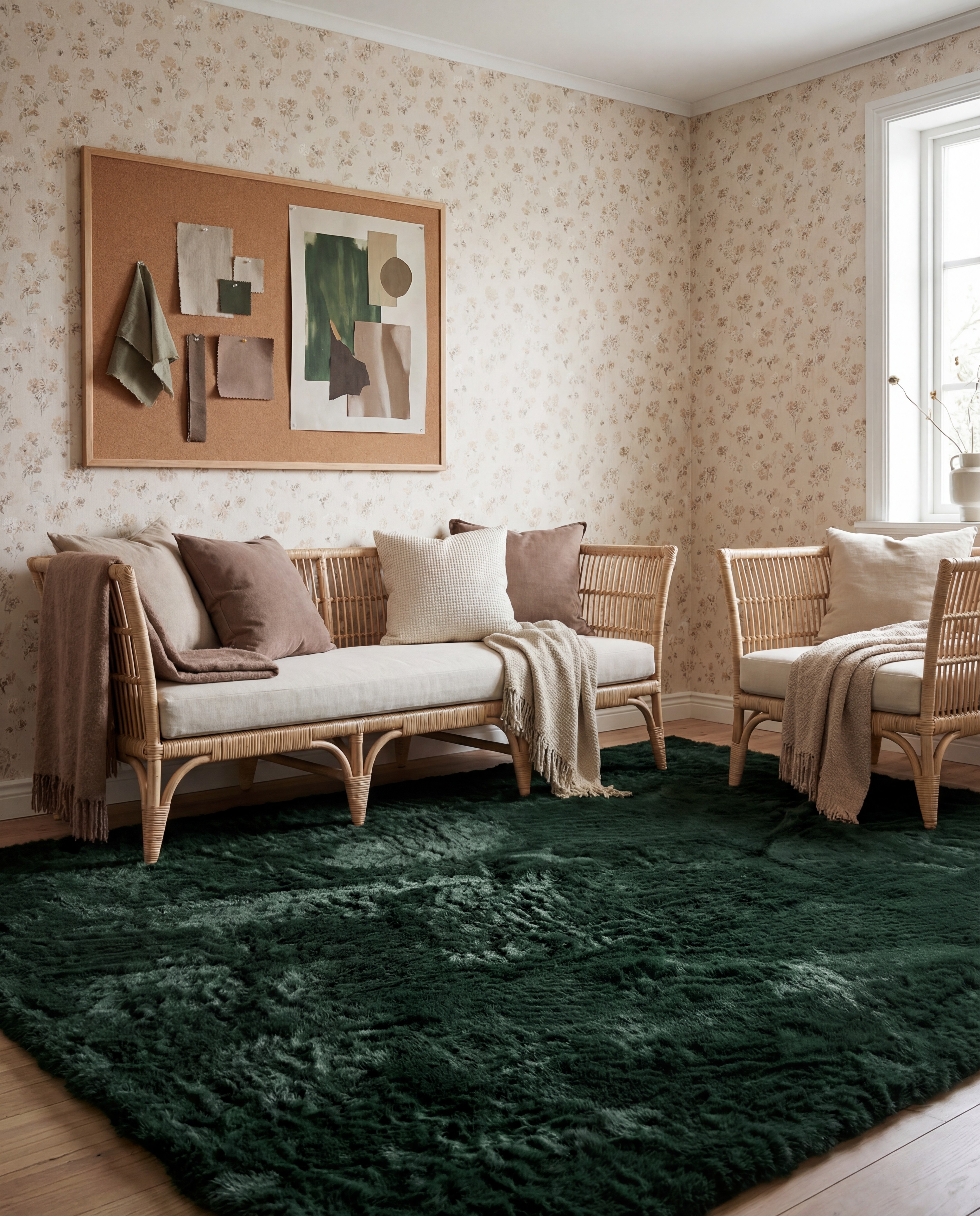 Fluffy är en len och gosig ryamatta med tät lugg och vacker glans. Den skiftar i ljusare och mörkare toner beroende på hur ljuset faller och skapar en varm, inbjudande känsla i hemmet.