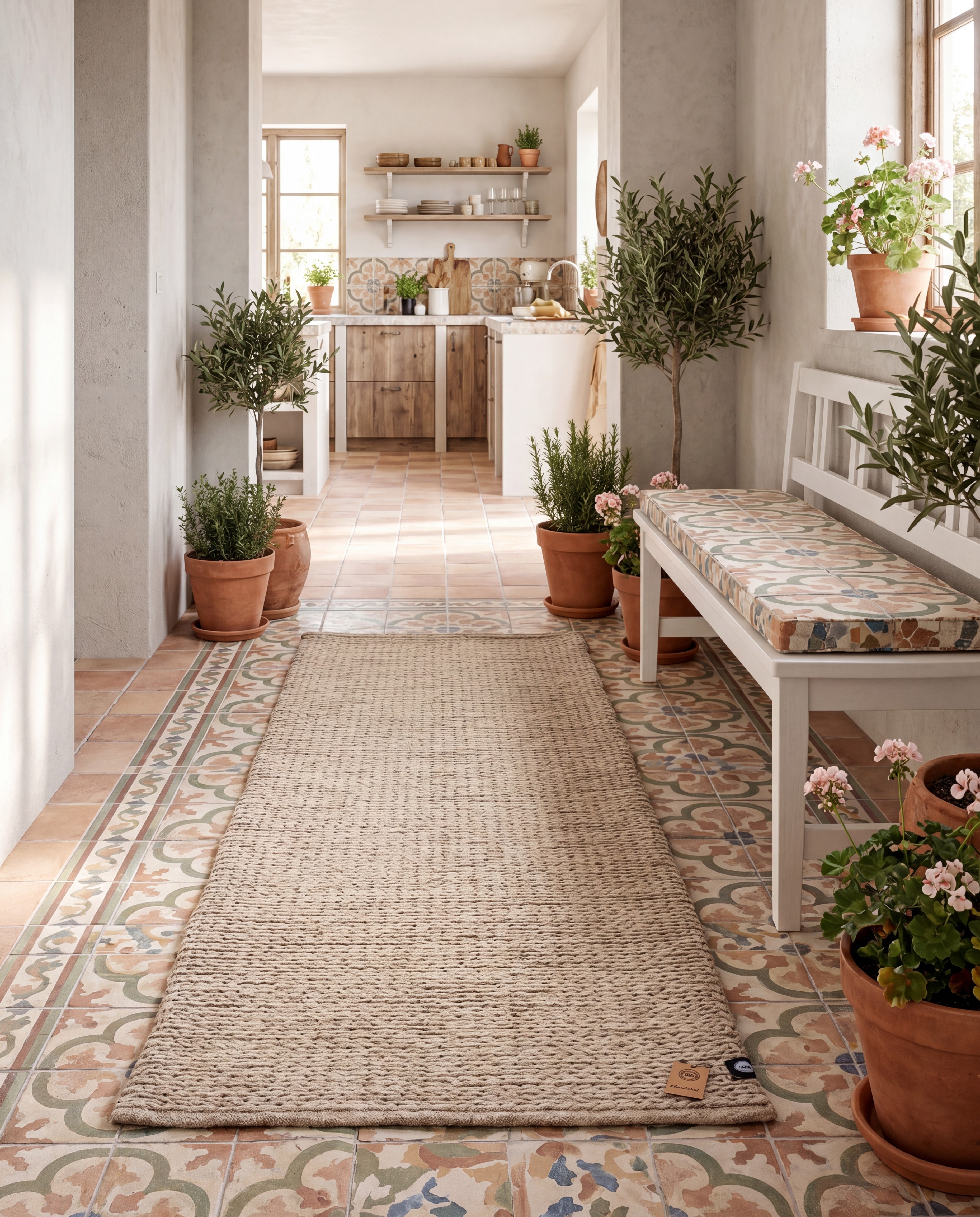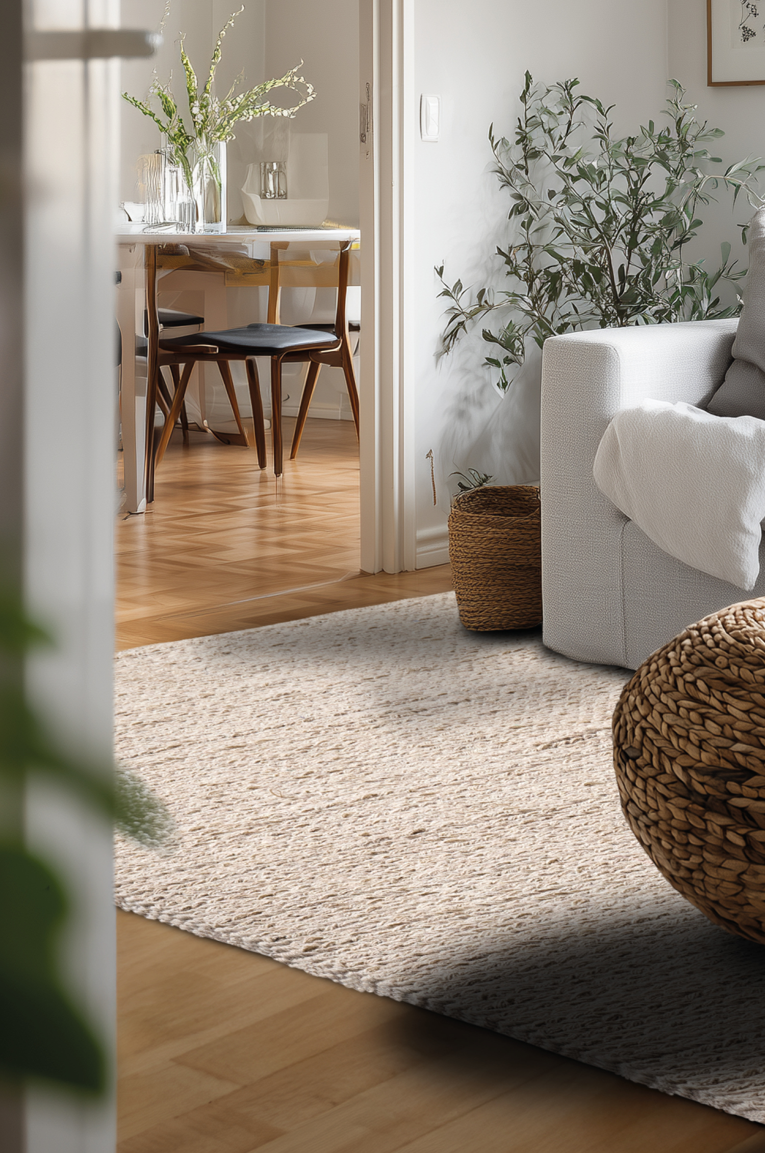 En handvävd ullmatta med naturlig struktur och mjuk, varm känsla. Den diskreta meleringen i den ljusa tonen ger ett harmoniskt och tidlöst uttryck som passar i de flesta miljöer. Tack vare ullens slitstyrka och smutsavvisande egenskaper är den både praktisk och hållbar – en stilren bas som lyfter rummet utan att ta över.