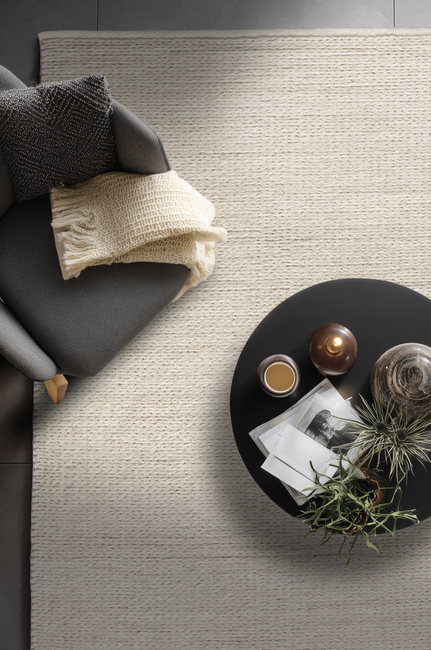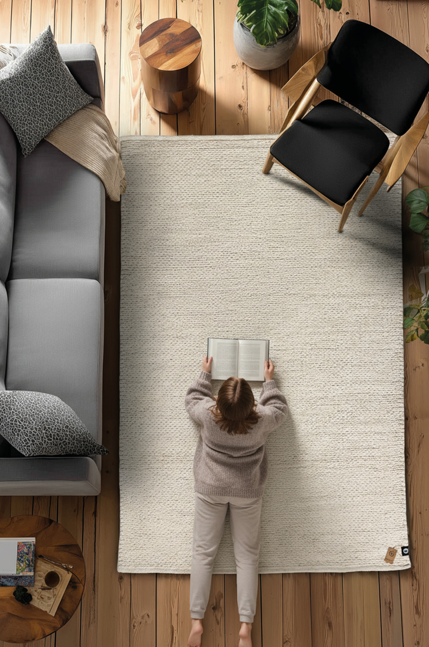 En handvävd ullmatta med naturlig struktur och mjuk, varm känsla. Den diskreta meleringen i den ljusa tonen ger ett harmoniskt och tidlöst uttryck som passar i de flesta miljöer. Tack vare ullens slitstyrka och smutsavvisande egenskaper är den både praktisk och hållbar – en stilren bas som lyfter rummet utan att ta över.