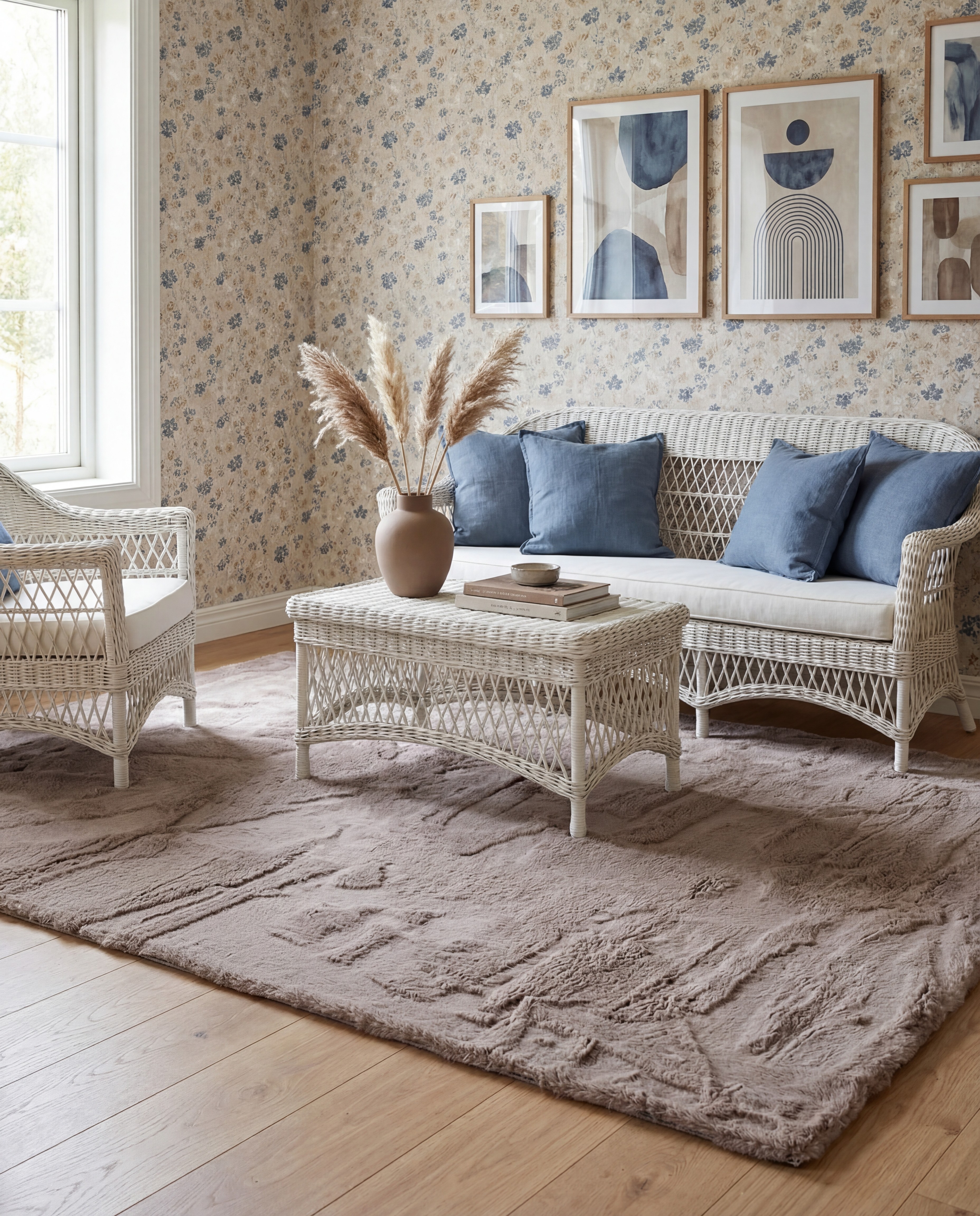 Fluffy är en len och gosig ryamatta med tät lugg och vacker glans. Den skiftar i ljusare och mörkare toner beroende på hur ljuset faller och skapar en varm, inbjudande känsla i hemmet.