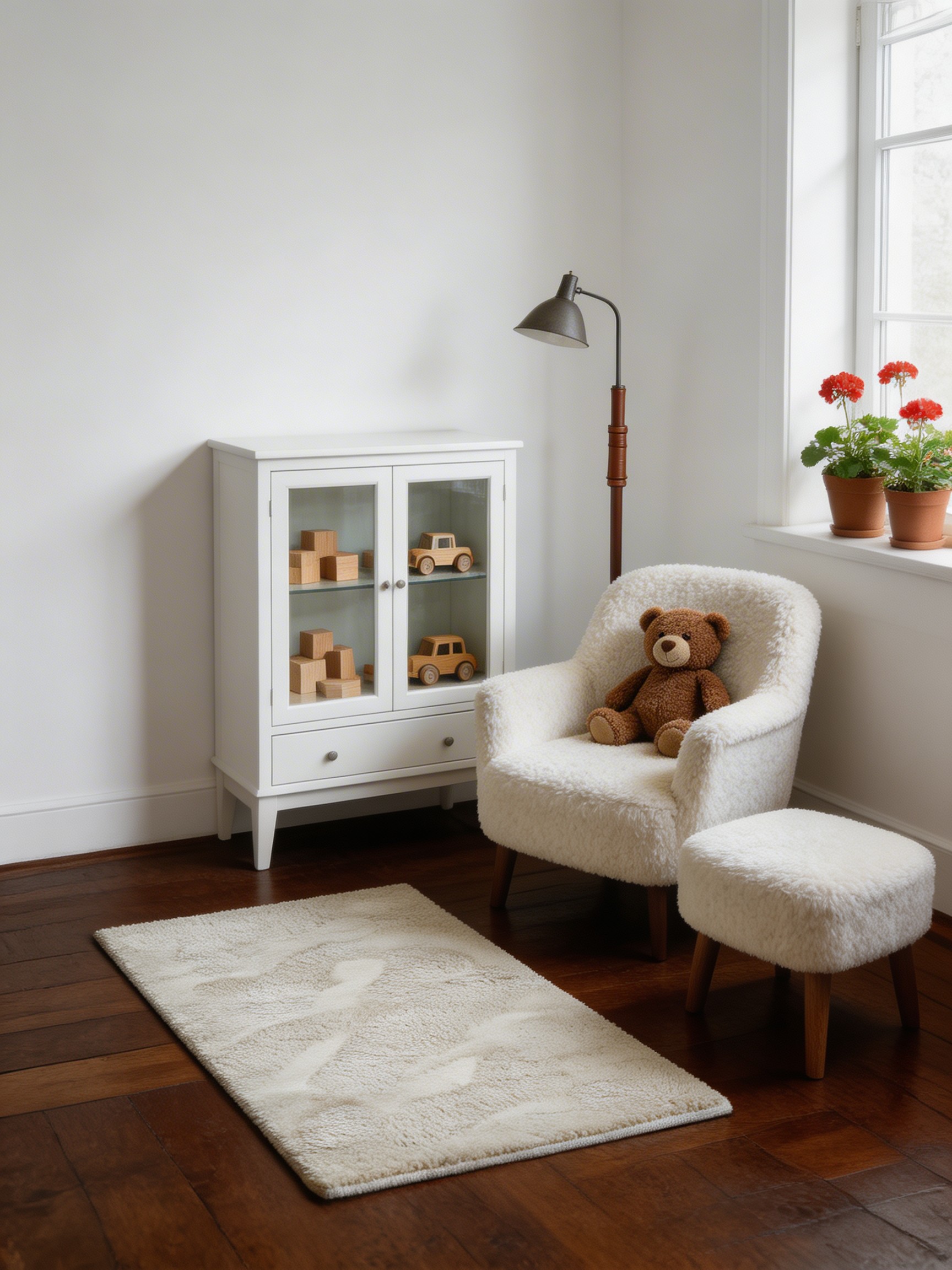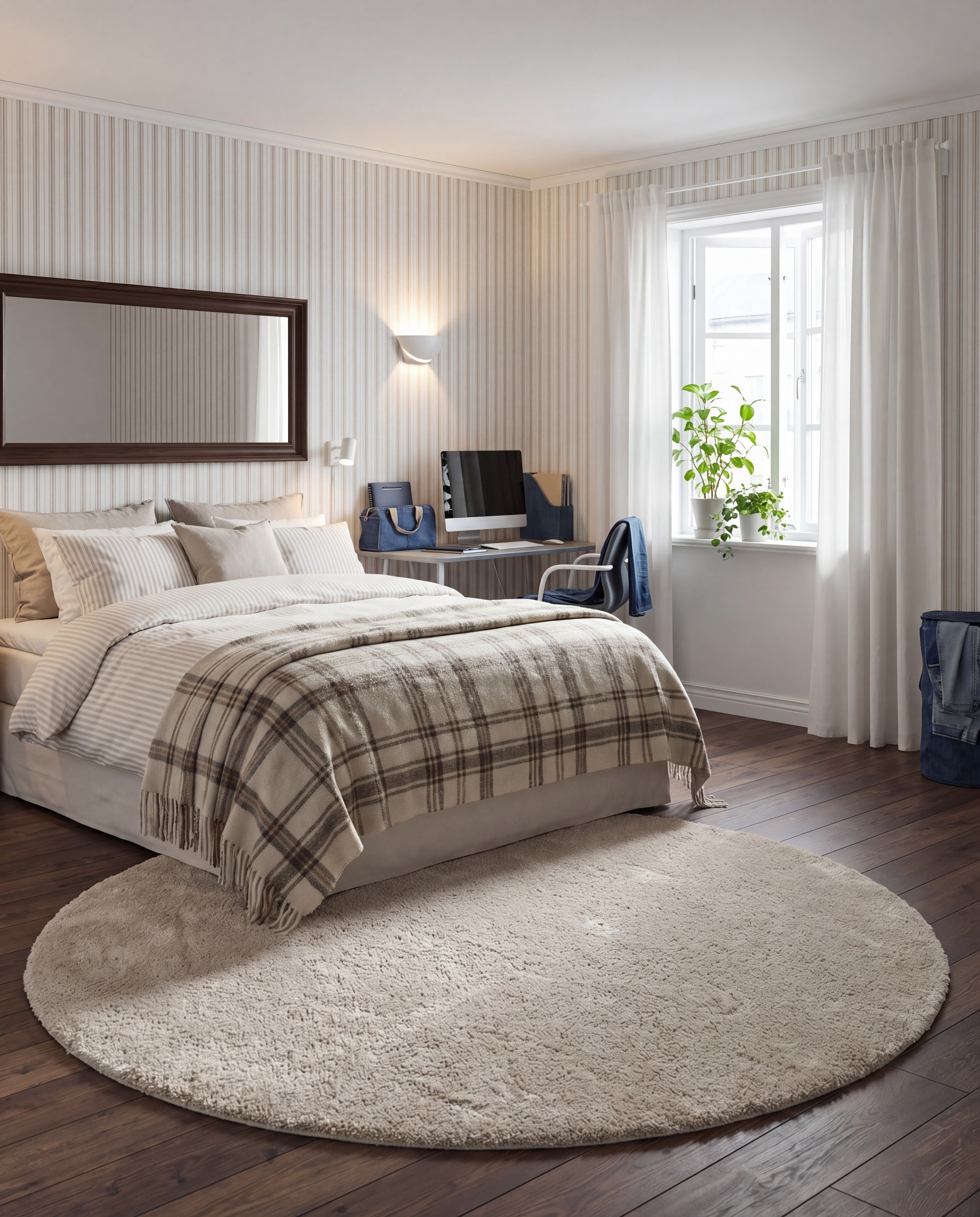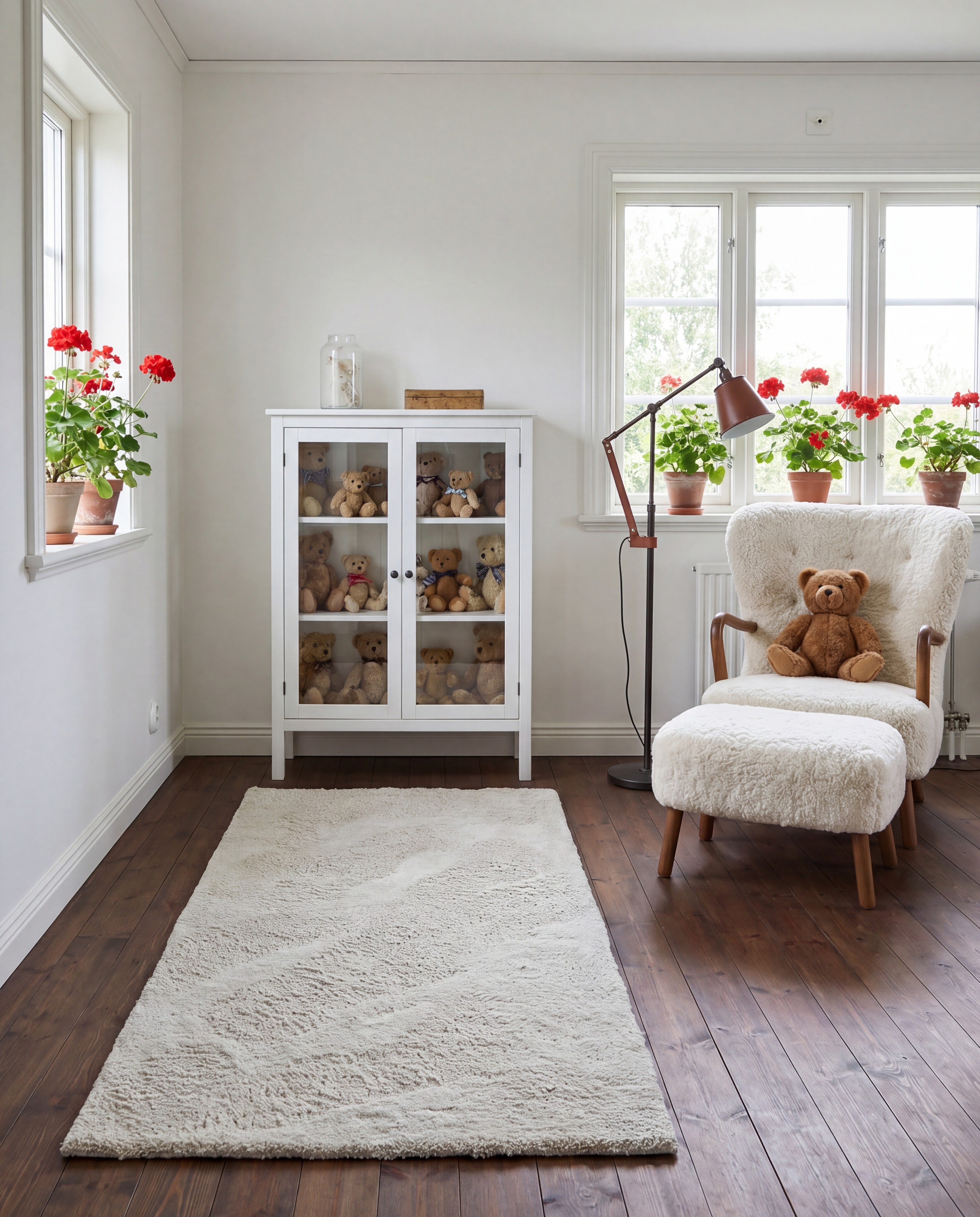 En supermjuk lite tunnare tuftad matta. Passar verkligen bra både i sovrummet, barnrummet och i vardagsrummet