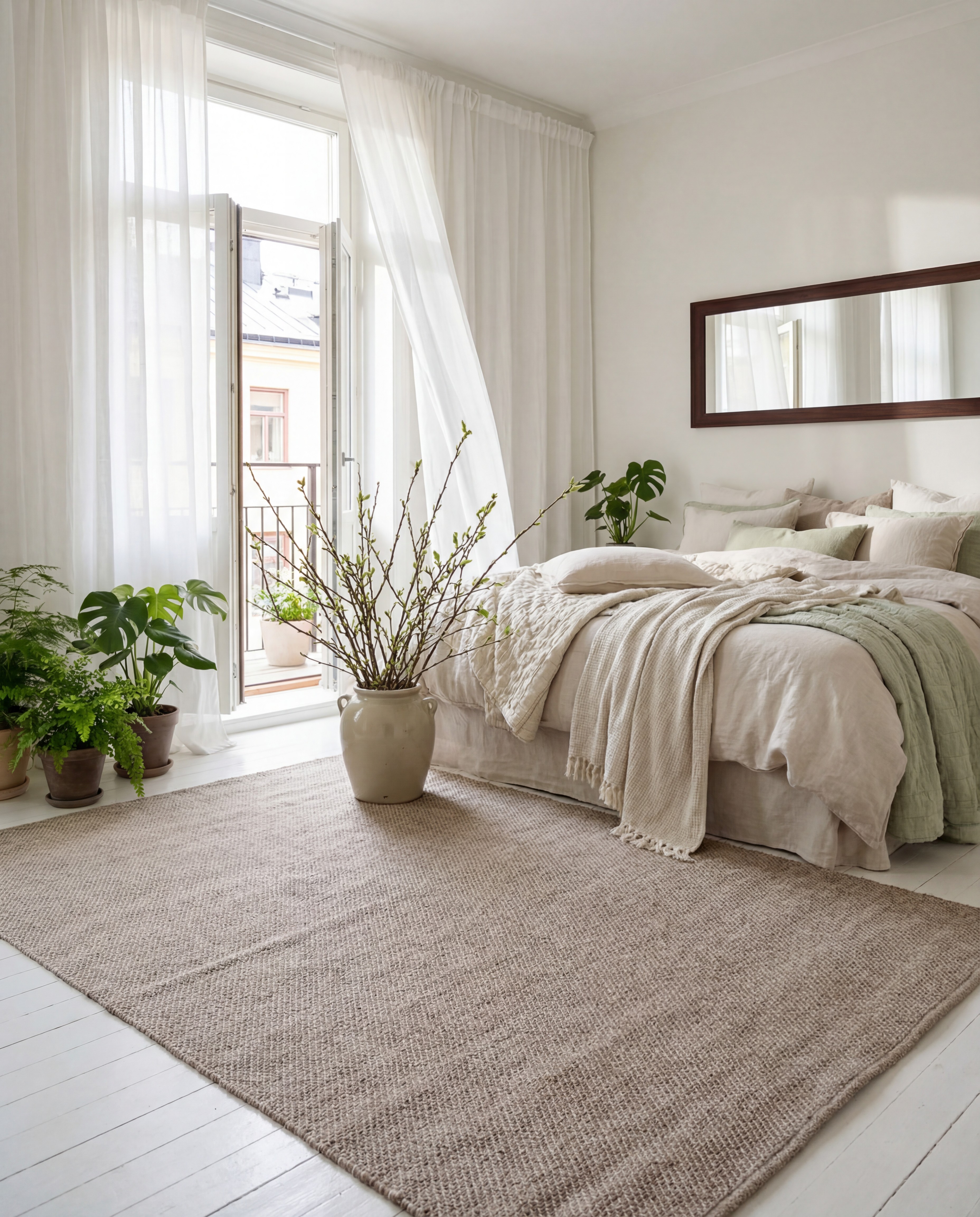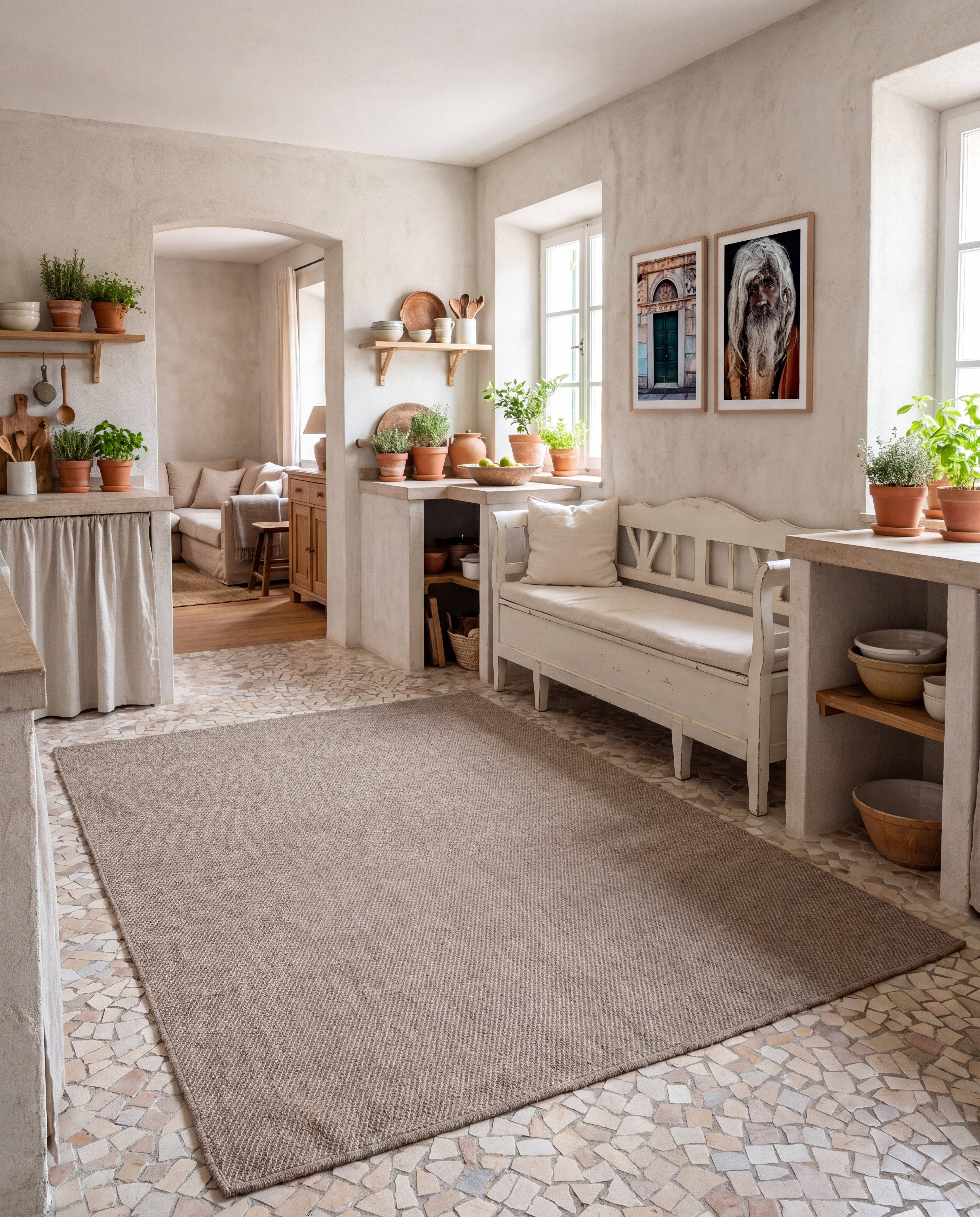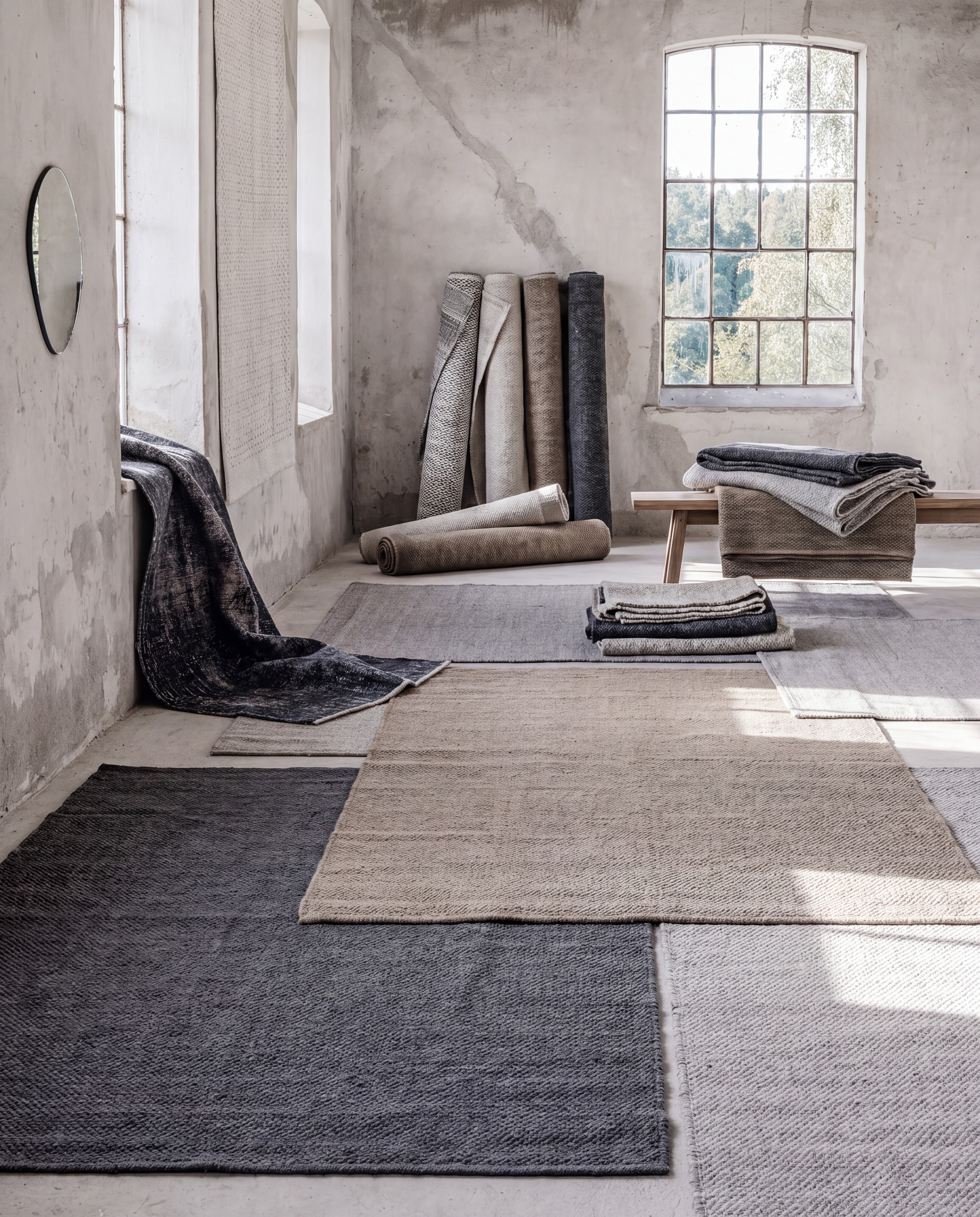 En tunn, fin, flatvävd ullmatta med fin struktur som mönster