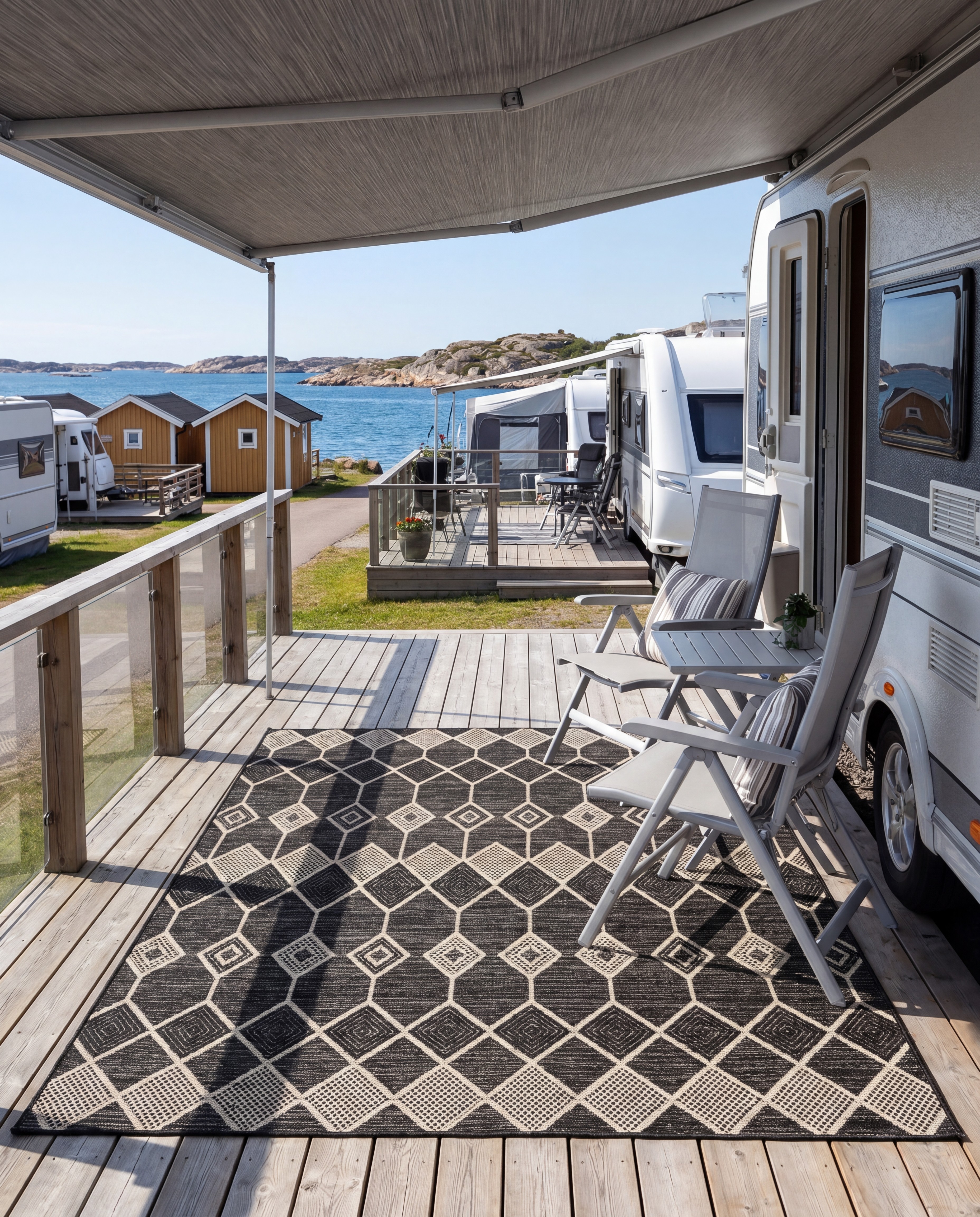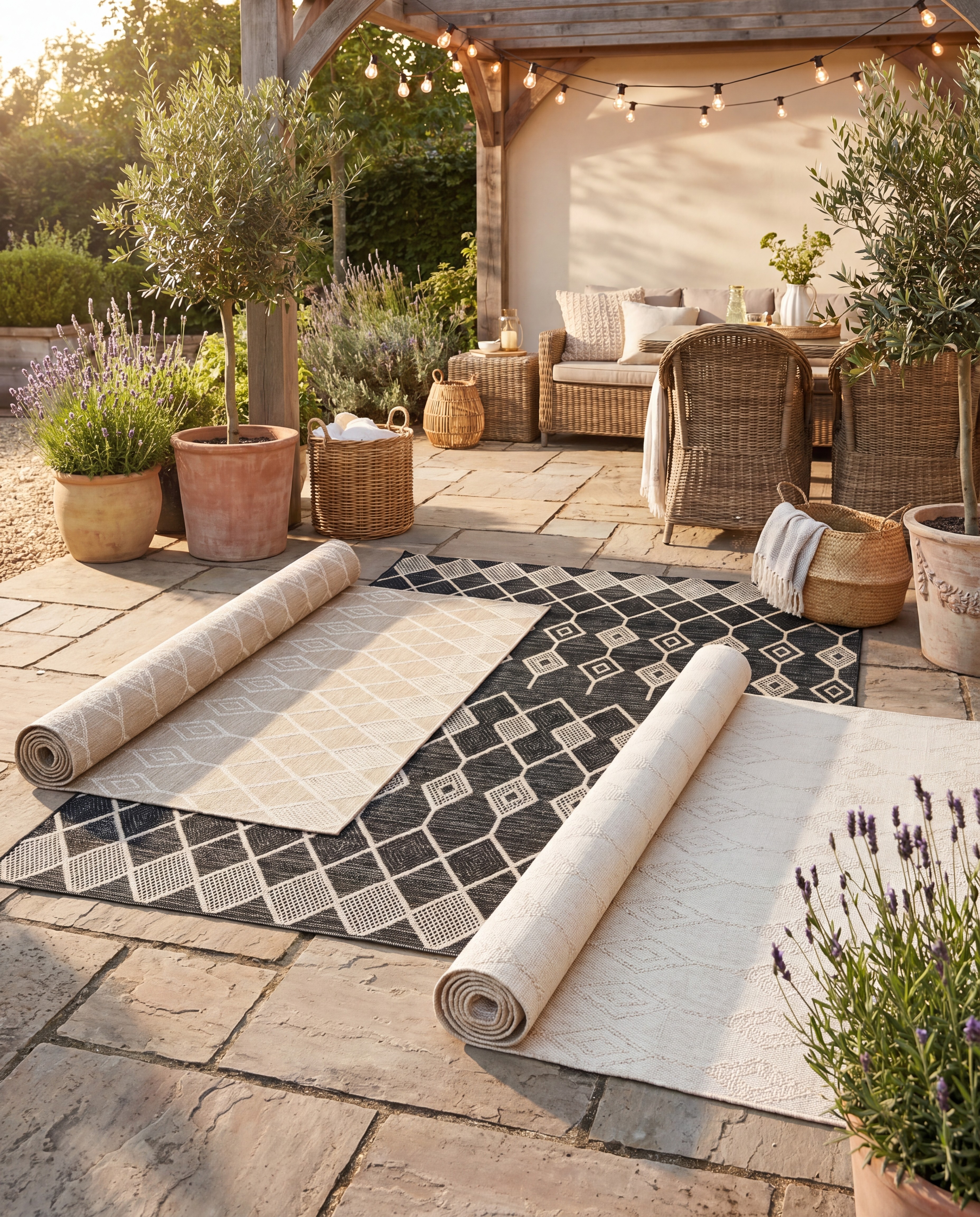 En jättefin flatweave som även passar utmärkt att ha utomhus. Självklart lika fin inomhus.
