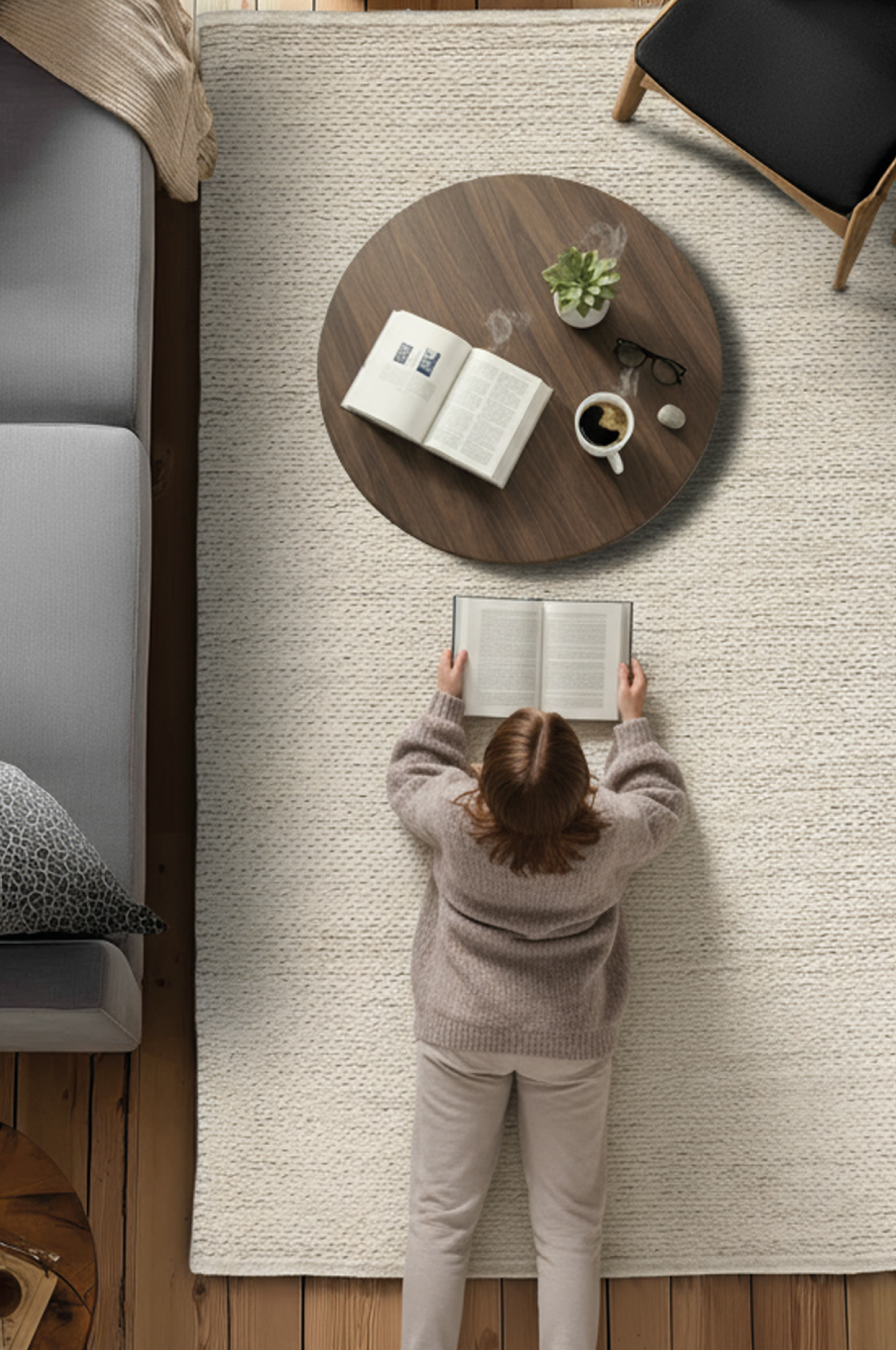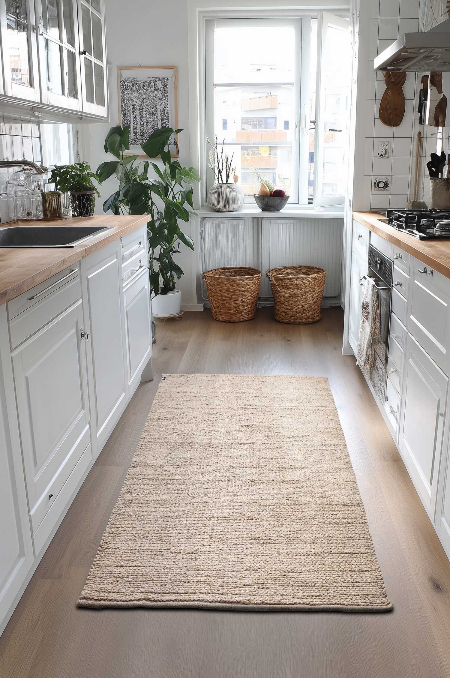 En handvävd ullmatta med naturlig struktur och mjuk, varm känsla. Den diskreta meleringen i den ljusa tonen ger ett harmoniskt och tidlöst uttryck som passar i de flesta miljöer. Tack vare ullens slitstyrka och smutsavvisande egenskaper är den både praktisk och hållbar – en stilren bas som lyfter rummet utan att ta över.