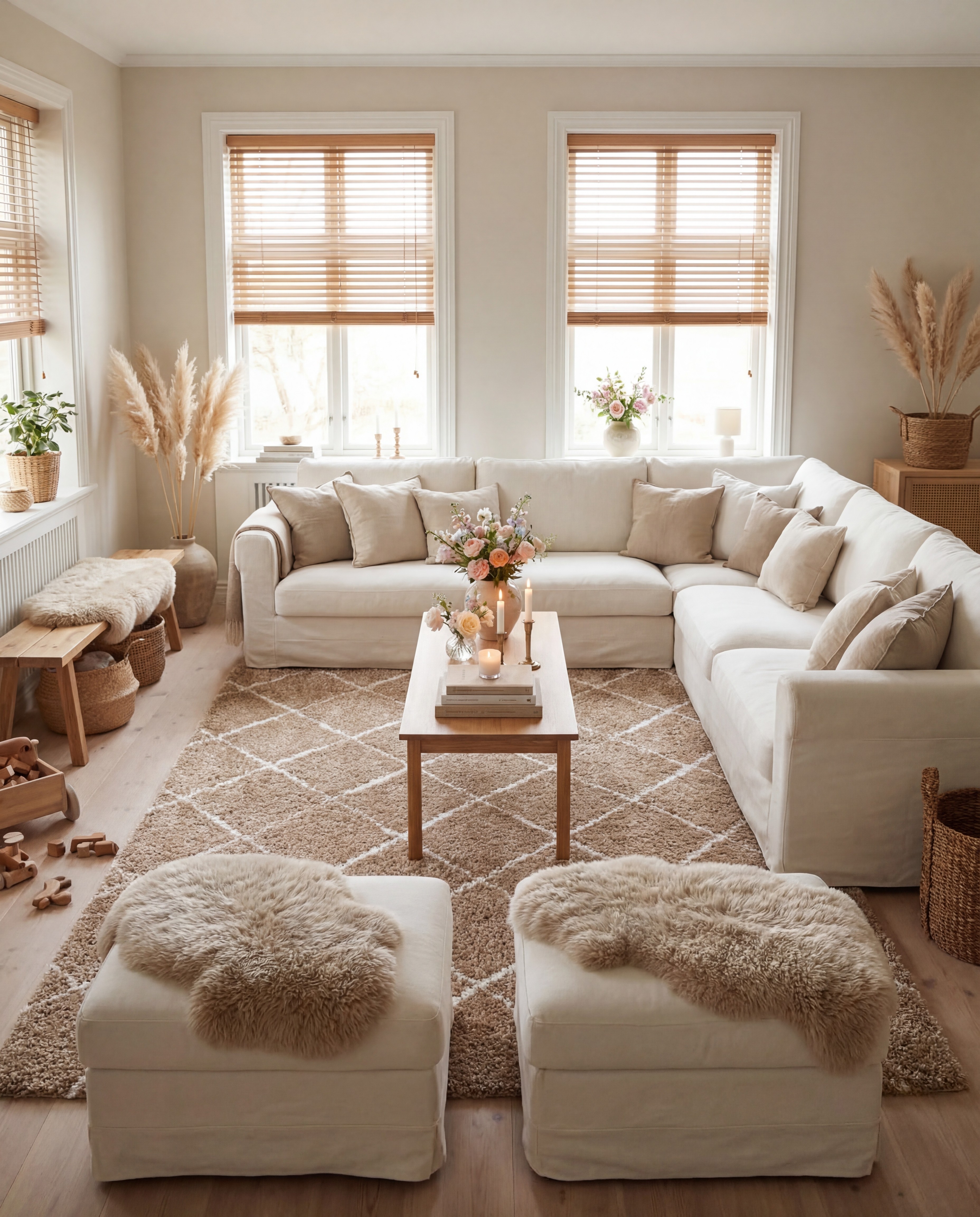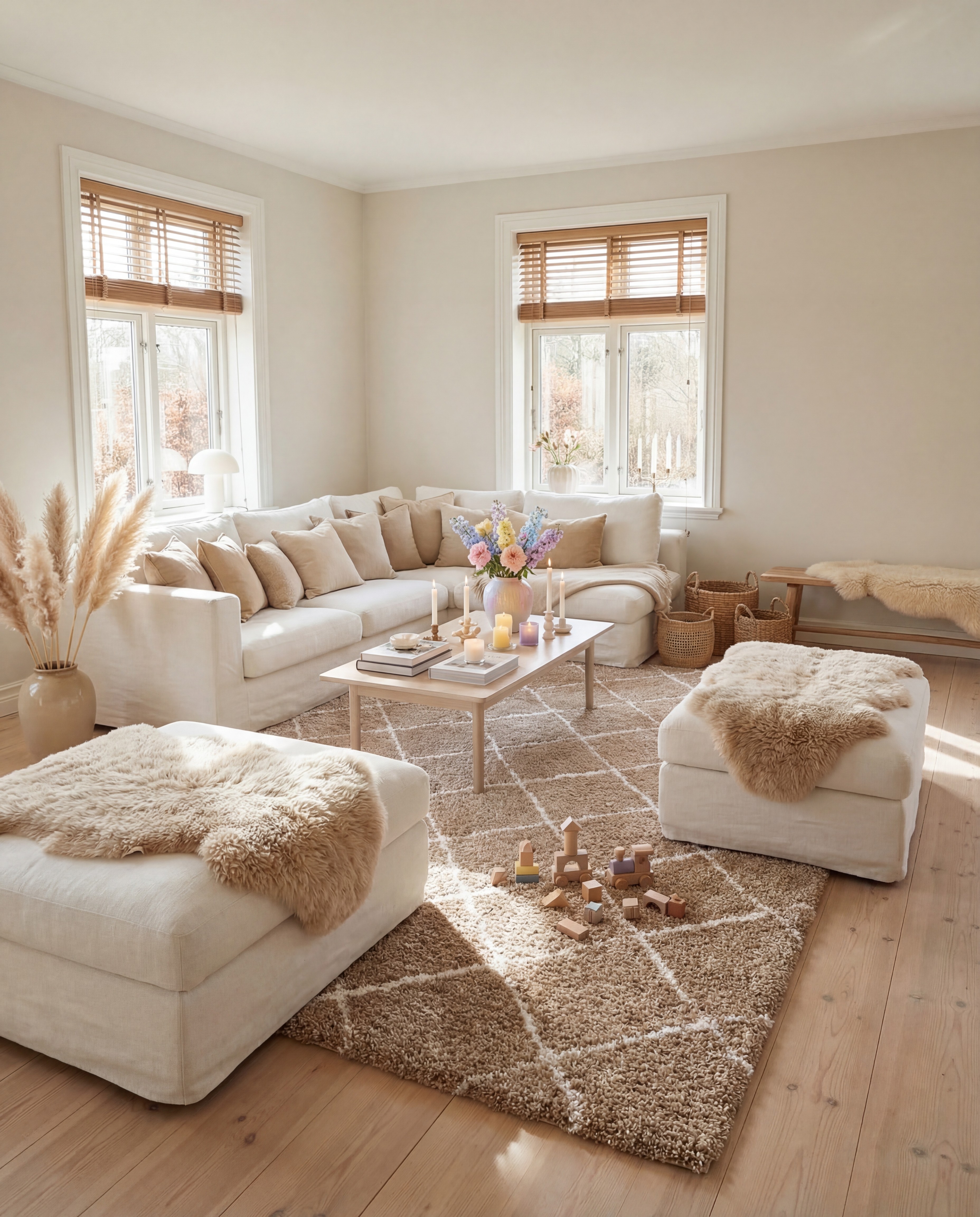 En fin naturfärgad tjock och härlig ryamatta som ligger fint på golvet.